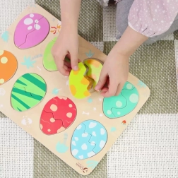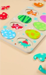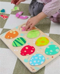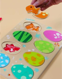 Dieses hochwertige Holzpuzzle verbindet Spiel und Lernen. Dank der drei Schichten können Kinder nach und nach Dinosauriereier aufdecken, darunter süße Dinosaurier finden und auf der untersten Schicht nach Hinweisskizzen suchen. Kräftige Farben und sicher verarbeitete Teile laden immer wieder zum Spielen ein.