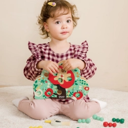 Mit dem „Specht-Vogel“ mit magnetischem Schnabel fangen Kinder bunte Perlen–Würmchen, die in den Öffnungen des Baumes versteckt sind. Das Spiel ist intuitiv, sicher und motiviert zum wiederholten Ausprobieren, wodurch Geduld und Genauigkeit ganz natürlich gefördert werden.