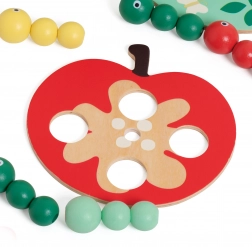 Das Greifen der Perlen und das präzise Zielen in die Öffnungen unterstützen die Feinmotorik, Geduld und Aufmerksamkeit der Kinder.