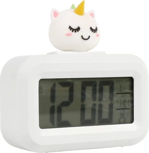 Der niedliche weiße Wecker mit Einhornmotiv begeistert Kinder und Fans magischer Accessoires. Dank der kompakten Abmessungen passt er auf den Nachttisch oder Schreibtisch. Den Betrieb gewährleisten 2 AAA-Batterien (nicht im Lieferumfang enthalten). Einfache Bedienung, leichtes Gehäuse und sicheres Design sind ideal für Kinder ab 3 Jahren.