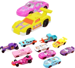 Dieses stylische Set ist ideal für Kinder ab 3 Jahren, die Autos und Rennen lieben. Die Metallkonstruktion mit Kunststoffdetails gewährleistet lange Haltbarkeit und unbeschwertes Spielen. Pastelltöne in Rosa, Blau und Violett regen die Fantasie an und machen jedes Modell zu einem einzigartigen Sammlerstück.