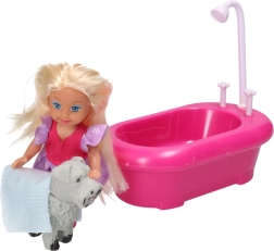 Dank der beiliegenden Badewanne und Dusche kann sich das Kind in die Rolle der Betreuungsperson hineinversetzen, die Puppe und ihr Haustier baden. Farbige Elemente und ein attraktives Design machen dieses Set zu einer tollen Dekoration fürs Kinderzimmer und zu einem idealen Geschenk.