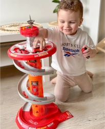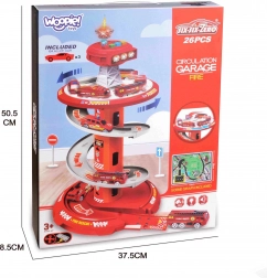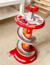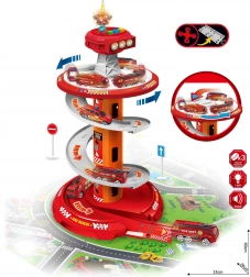 Woopie spiralförmiger Feuerwehr-Parkplatz mit Strecke und 3 Autos