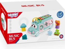 Musikauto mit Sortierer und Xylophon der Marke Woopie ist ein niedliches Auto in hellen Farben, das jedes Kind verzaubert. Es bietet viele Interaktionsmöglichkeiten und stimuliert die Sinne, während es die Motorik und logischen Fähigkeiten des Kindes entwickelt.