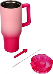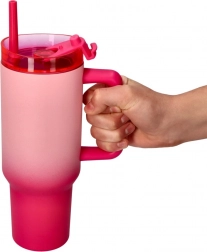 Entdecken Sie den Komfort eines großen Thermobechers mit Strohhalm in elegantem Rosa. Der breite Griff liegt hervorragend in der Hand, der Deckel minimiert Verschütten und der Strohhalm erleichtert das Trinken auch beim Gehen. Ideal für Wasser, Eiskaffee oder Limonaden.