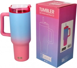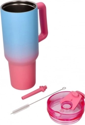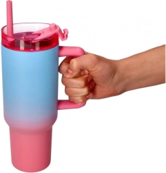 Entdecken Sie den Komfort des großen Thermobechers mit Strohhalm, der ein großes Volumen von 1200 ml mit einer leichten und praktischen Ausführung kombiniert. Dank des Deckels mit Trinkhalm trinken Sie bequem auch unterwegs, während der bequeme Henkel das Tragen erleichtert. Das trendige blau‑rosa Ombre-Design verleiht jedem Tag das gewisse Etwas.