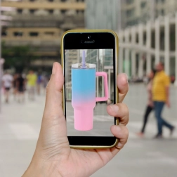 Der blau‑rosa Verlauf und der robuste Henkel sorgen für leichtes Tragen und einen modernen Look, der auf den ersten Blick überzeugt.