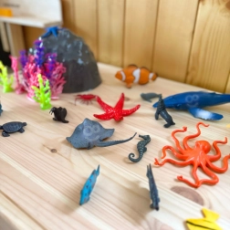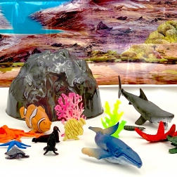 Figurensatz der Marke Woopie ist das perfekte Geschenk für jeden Fan von Meerestieren. Dieses Set enthält 21 Meerestiere, 10 Pflanzen, eine Unterlage und einen Felsen.
