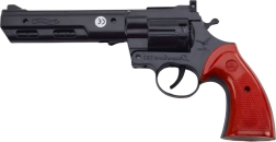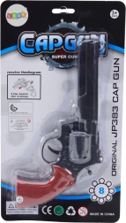 Entdecken Sie den klassischen Knallplättchen‑Revolver, der kleine und große Western‑Fans begeistert. Dank der drehbaren Trommel wirkt er besonders glaubwürdig und kann mit oder ohne Knallplättchen verwendet werden – als Spielzeug, Requisite oder Teil eines Kostüms. Der schwarze Korpus mit rotem Griff sorgt für einen authentischen Look und angenehmen Halt.