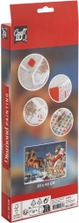 Vorgehensweise: Die Leinwand ist mit einer Folie mit Klebeschicht bedeckt. Entfernen Sie diese schrittweise während der Applikation der Steinchen. Sie befestigen die Steinchen mithilfe von Wachs in der Stiftspitze. Nach der Verwendung der Steinchen legen Sie sie zurück in den Beutel und fahren mit einer anderen Farbe fort.