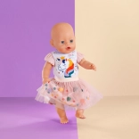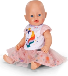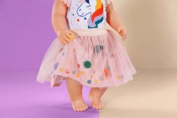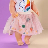 Gönnen Sie Ihrer Puppe einen magischen Look mit den einzigartigen Tutu-Kleidchen im Einhorn-Design. Das Set besteht aus einem weißen T-Shirt mit kurzen Ärmeln und verspieltem Einhorn-Print, kombiniert mit einem rosa Tutu-Rock aus Tüll mit echten bunten Pompons unter der oberen Schicht. Die Kombination aus sanften Materialien und elastischem Bund erleichtert das Anziehen und ist beim Spielen bequem.