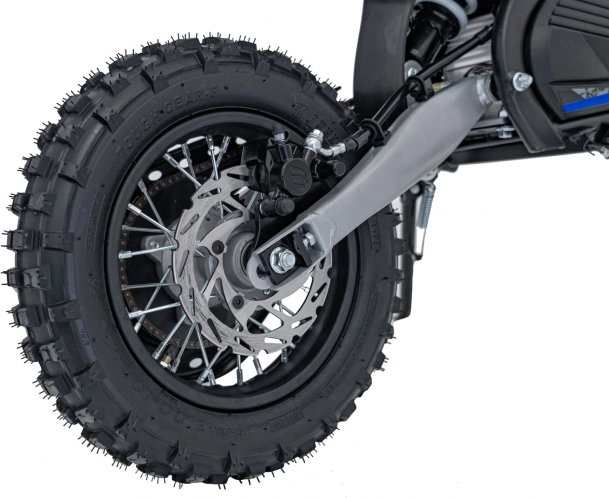 Für Sicherheit im anspruchsvollen Gelände sorgen die hydraulische Teleskopgabel vorne und der hintere einstellbare Stoßdämpfer, während Scheibenbremsen an beiden Rädern eine starke und gleichmäßige Bremswirkung gewährleisten. Breite Luftreifen mit tiefem Profil liefern exzellente Traktion auf Erde, Schotter und Gras. Nicht zuletzt bietet die Schlüsselgesteuerte Regelung von Geschwindigkeit und Drehmoment zusätzliche Sicherheit für jüngere Fahrer.
