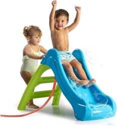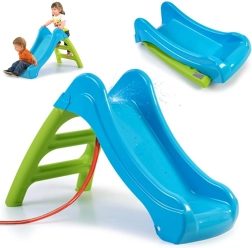 Im Sommer einfach den Gartenschlauch anschließen und die Rutschbahn in einen erfrischenden Wasserspielplatz verwandeln. Nach dem Spielen lässt sich die Rutsche leicht zusammenklappen und in Garage oder Keller verstauen – sie benötigt nur wenig Platz und ist schnell wieder aufgebaut.