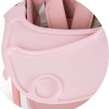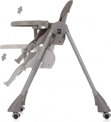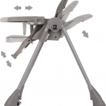 Eltern schätzen das doppelte Tablett – die obere, abnehmbare Schale für schnelles Reinigen und das untere mit Schutz-T-Bügel für maximale Sicherheit. Den Hochstuhl passen Sie mit 8 Höhenstufen leicht an den Esstisch an. Vier Rollen sorgen für Mobilität im Haushalt und nach dem Essen klappen Sie ihn einfach auf kompakte Größe zusammen.