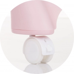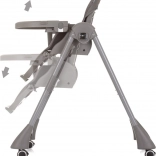 Vier Rollen erleichtern den Wechsel zwischen Räumen und das kompakte Zusammenklappen spart Platz, wenn der Hochstuhl gerade nicht verwendet wird.
