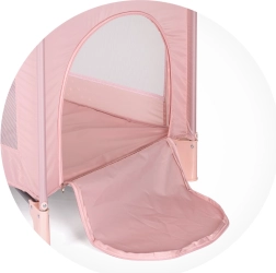 Das **Chipolino Reisebett Capri** in der Farbe Rose Water ist ein idealer Begleiter für Kinder und Erwachsene, sowohl für den täglichen Gebrauch als auch auf Reisen. Es bietet Platz zum Spielen sowie eine erholsame Schlafumgebung. **Eigenschaften:** - **Einfaches und schnelles Zusammenklappen:** Das Reisebett kann mühelos auf- und abgebaut werden. - **Seiteneingang mit Reißverschluss:** Praktischer Zugang, um Ihr Kind leicht hinein- und herauszunehmen. - **Weiche Unterlage auf der unteren Ebene:** Für zusätzlichen Komfort und Sicherheit Ihres Kindes. - **Zwei große seitliche Taschen:** Ideal zur Aufbewahrung von Spielzeug, Windeln oder anderen wichtigen Gegenständen. - **Gepolsterte Kanten:** Die Ecken des Bettes sind mit Kunststoffabdeckungen versehen, um die Sicherheit Ihres Kindes zu maximieren. - **Transporttasche:** Schützt das Bett vor Schmutz und erleichtert den Transport sowie die Lagerung. Dieses Reisebett wurde gemäß der europäischen Norm **EN716-1** gefertigt und erfüllt alle vorgeschriebenen Sicherheitsanforderungen.