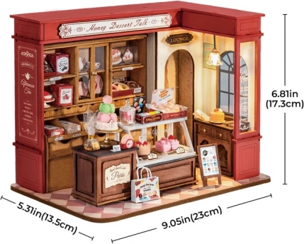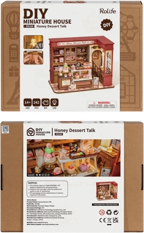 Bauen Sie Ihre eigene „Honigkonditorei“ – ein realistisches Diorama mit Schaufenstern, Regalen und Miniatur‑Desserts, das jeden Raum zum Leuchten bringt. Präzise zugeschnittene Teile rasten sicher ohne Kleber ein, sodass der Aufbau sauber, unterhaltsam und zugleich stabil ist. Die integrierte LED‑Beleuchtung sorgt für eine gemütliche Atmosphäre und betont alle Details der Auslage.