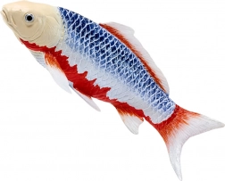 Diese wunderschön gestaltete Figur des Koi-Karpfens in der Farbvariante Asagi ahmt das natürliche Vorbild detailgetreu nach – von der Schuppenstruktur bis zu den feinen Farbverläufen. Durch die Handbemalung kommt jedes Detail zur Geltung, wodurch die Figur besonders authentisch wirkt.