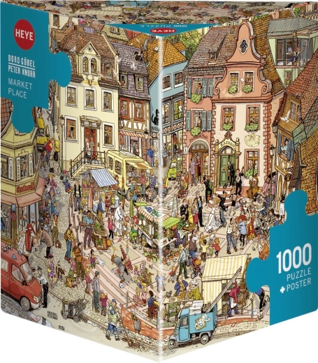 HEYE Puzzle Markt 1000 Teile in dreieckiger Schachtel mit Poster. Abmessungen 70x50 cm. Außergewöhnlicher Spaß für alle Puzzle-Liebhaber.