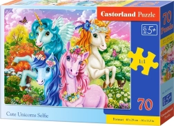 Begeben Sie sich auf eine magische Reise mit dem Puzzle Einhörner, das 70 Teile enthält. Perfekt für Kinder und Erwachsene, die Herausforderungen lieben und qualitative Zeit beim Puzzeln verbringen möchten. Dieses Puzzle bietet ein wunderschönes Bild voller Details und Farben.