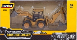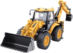 Das Modell ist mit vielen beweglichen Teilen ausgestattet, die seine Funktionalität erhöhen. Die vordere Schaufel ist ausziehbar und kann gehoben und gesenkt werden, was eine realistische Nachahmung des Belade- und Transportvorgangs von Materialien ermöglicht. Der hintere Baggerarm hat eine bewegliche Schaufel, die eine genaue Simulation von Graben- und Erdarbeiten erlaubt und so die Spielmöglichkeiten erweitert.