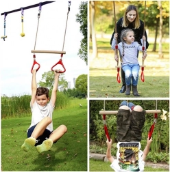 Kruzzel Kindertrapezschaukel ist eine ideale Kombination aus Schaukel und Turngeräten, geeignet für Kinder, die Spaß und aktive Bewegung an der frischen Luft genießen möchten. Einfache Montage und höhenverstellbare Seile gewährleisten Vielseitigkeit der Nutzung und Sicherheit bis zu 100 kg.
