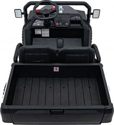 Das Interieur begeistert mit zwei separaten Sitzen aus Kunstleder mit Sicherheitsgurten, einem funktionsreichen Audio-Panel (FM-Radio, MP3, Bluetooth, USB) und Bedienelementen am Lenkrad. Für zusätzliche Sicherheit der Eltern steht eine 2,4-GHz-Fernbedienung mit drei Geschwindigkeiten und einer sofortigen STOP-Taste zur Verfügung. Der große hintere Kofferraum mit klappbarer Heckklappe nimmt alles Nötige für eure Ausflüge mit.