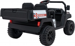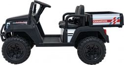 Der leistungsstarke elektrische Pick-up CHAMPION in markantem Schwarz ist für Abenteuer gebaut. Zwei 200-W-Motoren (insgesamt 400 W) in Kombination mit einem 24V 9Ah Akku liefern Kraft auch für leichtes Gelände, während EVA-Schaumräder und die vollständige Federung vorne und hinten Komfort und Stabilität gewährleisten. Sanftes Anfahren, 2 Vorwärtsgeschwindigkeiten und Rückwärtsgang erleichtern die Bedienung für Einsteiger.
