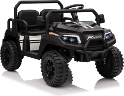 Das viersitzige elektrische Buggy Champion in elegantem Schwarz ist für gemeinsame Abenteuer gemacht. Dank des Antriebs 2×200 W und der 24 V / 9 Ah Batterie bietet es genügend Leistung auch abseits befestigter Wege. Große EVA-Räder 29×12 cm und Vorder- und Hinterradfederung sorgen für eine bequeme und stabile Fahrt.