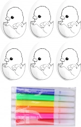 Entdecken Sie kreatives Osterbasteln mit einem Set, das 6 Polystyrol-Eier mit dem Motiv Küken im Ei und 6 Filzstifte in leuchtenden Farben enthält. Die glatte, weiße Oberfläche der Eier ist ideal zum Malen, Beschriften und Bekleben mit Deko. Perfekt für Familien-Workshops, Kitas und Schulen.