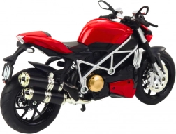 Dieses rote Sportmotorrad im Maßstab 1:12 besticht durch präzise Details und eine robuste Verarbeitung. Dank Metallkarosserie und Kunststoffakzenten wirkt es realistisch und macht sich hervorragend im Regal, auf dem Schreibtisch oder in der Vitrine. Integrierte Licht- und Soundeffekte, betrieben mit AG13-Batterien, verstärken das Gefühl einer echten Fahrt.