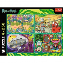 Entdecken Sie die verrückte Welt von Rick und Morty durch diese Puzzles. Vier unterschiedliche Puzzles, jedes mit den Maßen 339x238 mm, zeigen ikonische Charaktere und Szenen aus der populären Serie Rick und Morty.