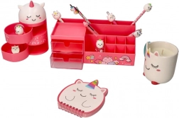 Zarte Rosétöne mit einem liebenswerten Gesicht und Einhorn-Details verleihen Ihrem Schreibtisch Stil und Spielfreude.