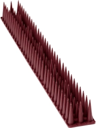 Kunststoffspikes gegen Vögel sind eine wirksame und schonende Lösung zum Schutz von Fensterbänken, Gesimsen, Geländern und Balkonen. Die dichte Anordnung der Spikes verhindert sicheres Landen und reduziert damit Verschmutzungen und das Risiko von Schäden. Die braune Farbe wirkt unauffällig und stört die Fassadenoptik nicht.