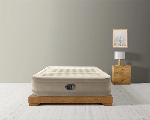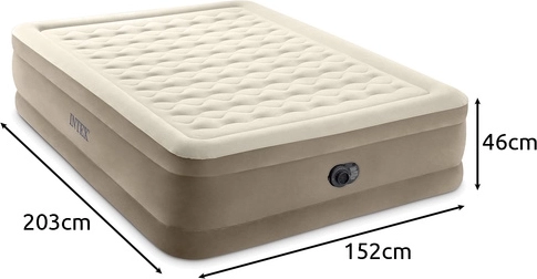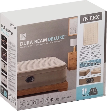 Genießen Sie erholsamen Schlaf zu Hause und unterwegs. Das Doppelbett von INTEX mit Dura‑Beam‑Technologie und Fiber‑Tech‑Fasern bietet eine stabile Körperstütze ohne Einsinken und eine lange Lebensdauer. Die weiche, plüschige Oberfläche fühlt sich angenehm an, sodass oft kein zusätzliches Spannbettlaken erforderlich ist. Dank der integrierten elektrischen Pumpe ist die Matratze in etwa 3 Minuten aufgepumpt und entlüftet.