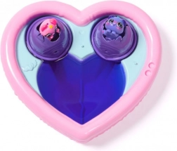 Lege die Eier in den Herz-Pool, entferne die Flügelchen und gieße langsam Wasser ein. Sobald beide Seiten des Herzens die Farbe wechseln, schlüpfen die Figuren. Mit mehr Wasser mischen sich die Farben zu Lila – für einen noch stärkeren Wow-Effekt.