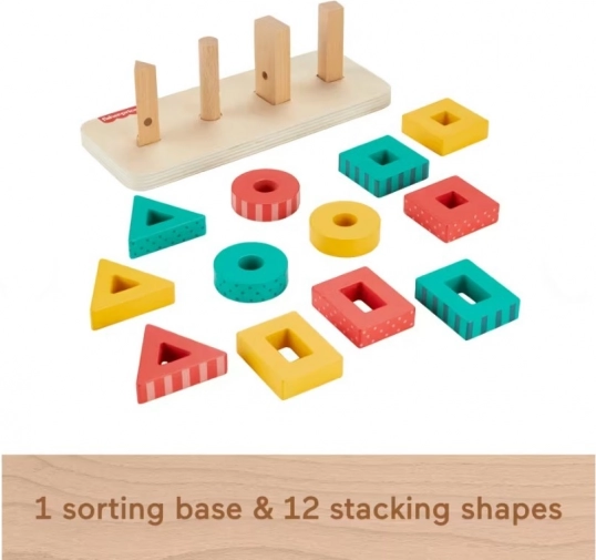 Holz-Formensortierer FISHER-PRICE aus FSC-Holz mit 12 Formen. Sichere Farben auf Wasserbasis, fördert Motorik und Logik. Ideal ab 2 Jahren.