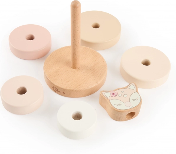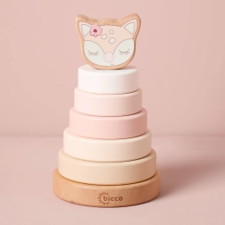 Diese Stapelpyramide in sanften Farben verbindet kindgerechtes Design mit einem langlebigen Naturmaterial. Die Teile sind für kleine Hände gemacht, sodass Kinder sie gut greifen können und dabei Geduld sowie logisches Denken trainieren.