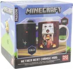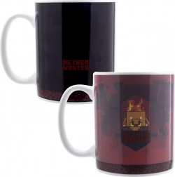 Stilvolle Keramiktasse mit MINECRAFT: Nether Motiv mit einem Volumen von 300 ml, die ihr Design je nach Getränketemperatur ändert. Gießen Sie ein heißes Getränk ein und beobachten Sie, wie ikonische Pixelmotive erscheinen. Ideales Geschenk für Fans, originelles Accessoire für jede Sammlung. Nicht spülmaschinen- oder mikrowellengeeignet.