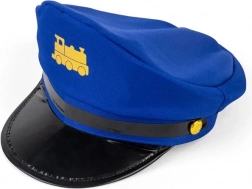 Die blaue Kappe mit glänzendem schwarzem Schirm und gelbem Zug-Emblem erzeugt sofort die Atmosphäre einer echten Eisenbahn.
