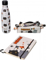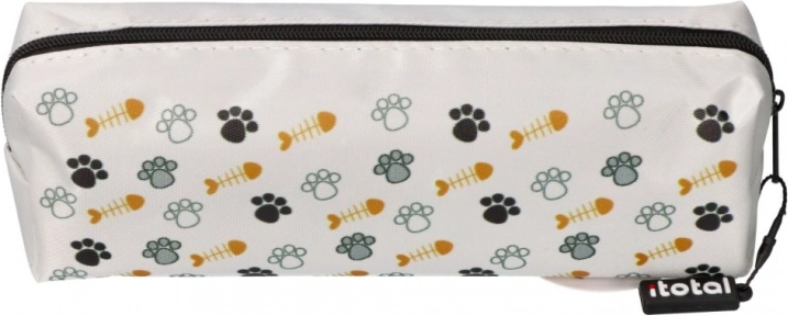Das weiße Mäppchen mit Katzen- und Pfotenprint zieht die Blicke auf sich und verleiht Schulutensilien einen verspielten Stil.