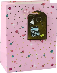 Geschenktasche für besondere schulische Anlässe ist hervorragend gestaltet mit einem modernen Muster, inspiriert von schulischen Motiven, die Aufmerksamkeit erregen und dem Geschenk einen einzigartigen Charakter verleihen. Hergestellt aus hochwertiger dekorativer Pappe, gewährleistet sie Haltbarkeit und Ästhetik auch beim Transport schwererer Gegenstände. Goldene Schnurgriffe bieten Komfort und sichere Handhabung.