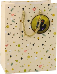 Hergestellt aus hochwertiger Pappe mit stabilen goldenen Schnurgriffen für komfortables Tragen auch schwererer Gegenstände.