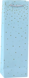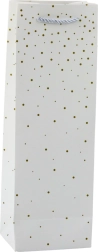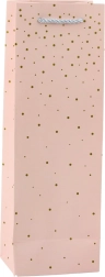 Elegante Papiertasche für Flaschen ist die perfekte Möglichkeit, Getränke für verschiedene Anlässe zu verpacken. Hergestellt aus hochwertigem Papier und gekennzeichnet durch ein subtiles Muster aus goldenen Punkten, die Eleganz und Stil verleihen.