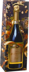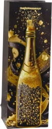 Suchen Sie eine elegante Möglichkeit, eine Flasche Wein, Sekt oder selbstgemachten Likör zu verpacken? Diese Geschenktasche aus hochwertigem Papier überzeugt durch glänzende goldene Akzente und ein Champagner-Motiv, die dem Geschenk eine besondere Note verleihen. Geflochtene Materialgriffe in Gold liegen angenehm in der Hand und sorgen für sicheres Tragen.