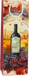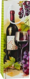 Bunte Motive mit Weinflaschen und Trauben verleihen der Tüte ein elegantes Aussehen.