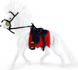 Das Pferd ist mit Sattel und Trense ausgestattet, sodass Kinder echte Reiter spielen und eigene Geschichten erfinden können.