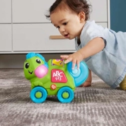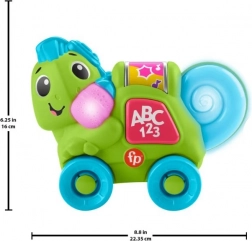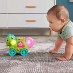 Interaktives Spielzeug Chamäleon von Fisher-Price Link Squad ist ein fröhlicher Freund auf Rädern, der melodischen Spaß bietet. Dank interaktiver Elemente wie dem farbenfrohen Drehknopf und der seitlichen Taste leuchtet das Chamäleon im Rhythmus der Lieder und Klänge auf, was Kindern hilft, ihre Fähigkeiten und ihr Farberkennen zu entwickeln.