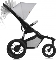 Der Sportkinderwagen LIONELO Azura wurde für Eltern entwickelt, die eine zuverlässige Alltagslösung suchen. Große luftgefüllte Räder und eine effektive Federung sorgen für eine sanfte Fahrt auf dem Gehweg und in leichtem Gelände, während der breite, hohe Sitz auch älteren Kindern Komfort bietet. Das XXL-Verdeck mit wasserabweisender Beschichtung und UPF50+ schützt vor Sonne und Regen.