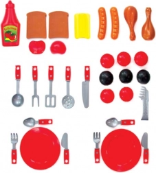Der Grill ist ideal nicht nur für den Außeneinsatz, sondern auch für das Spielen im Innenbereich. Es sind Küchenutensilien enthalten, die an den Haken rund um den Grill gehängt werden können. Dank seines praktischen Designs und seiner Tragbarkeit ist er sowohl im Garten als auch im Haus beliebt.